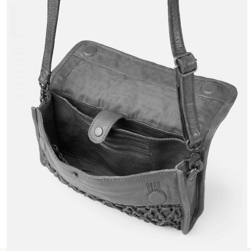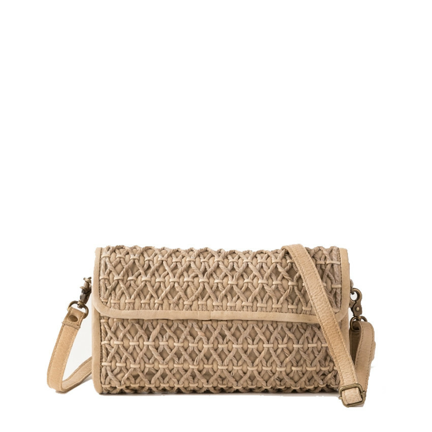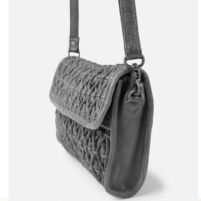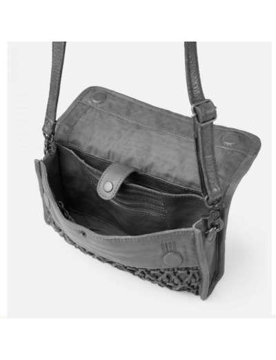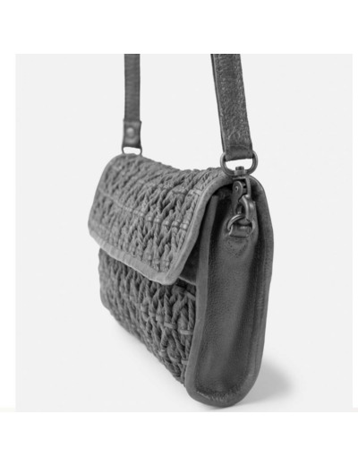Un sac BIBA de la ligne Nekimi porté travers fabriqué en cuir de vachette tressé et délavé avec un design aux finitions vintage, un sac femme en cuir parfait pour les sorties des week-ends.