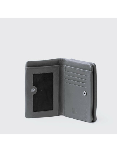 Ce grand portefeuille mesure 10 x 14 cm et se compose d’un cuir naturel souple. Il dispose d’une fermeture à bouton pression, d’une poche zippée au dos, de plusieurs compartiments pour billets, de quatre fentes pour cartes ainsi que d’une fente transparente pour une carte d’identité ou un badge.