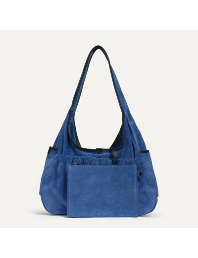 Bleu de Chauffe Sac Besace Paula Cuir Daim Bleu Agate