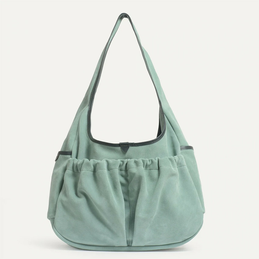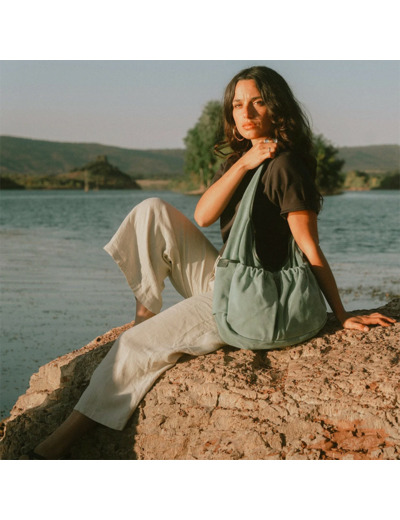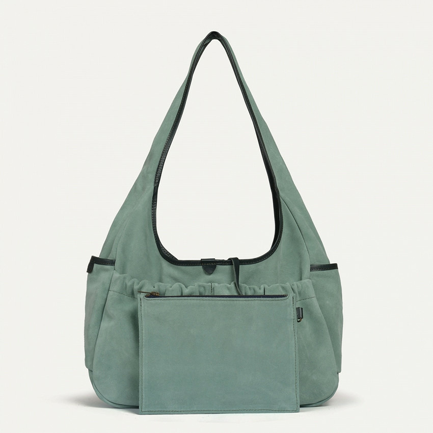 Bleu de Chauffe Sac Besace Paula Cuir Daim Vert Jade