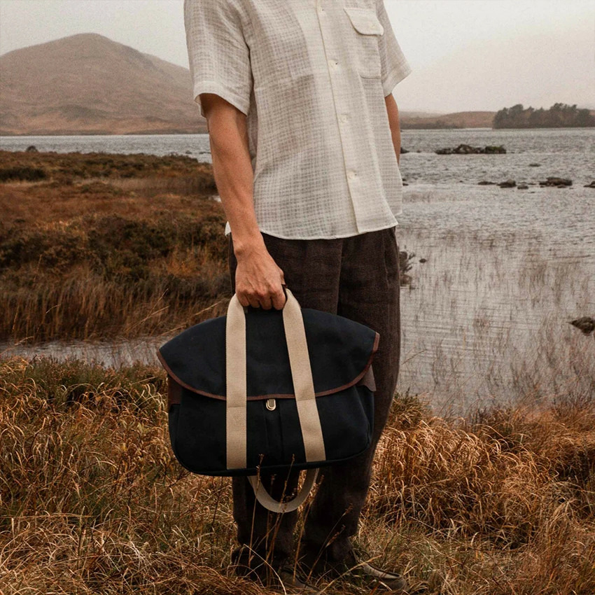 Bleu de Chauffe Sac Business Musette Coton et Cuir Marine Bm