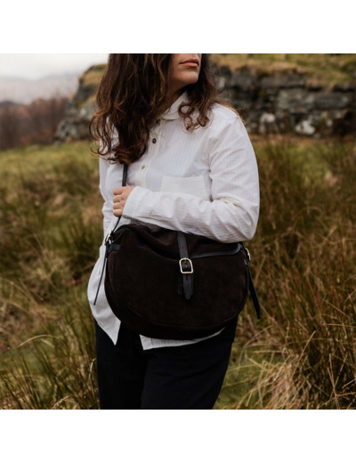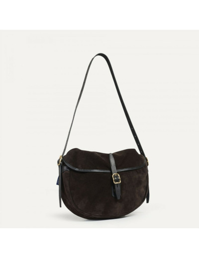 Bleu de Chauffe Sac Musette Demi Lune Margot Cuir Velours Marron Fonce