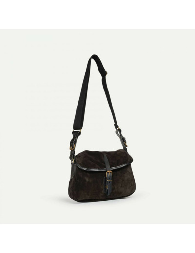 Bleu de Chauffe Sac Musette XS Cuir Velours Marron Foncé