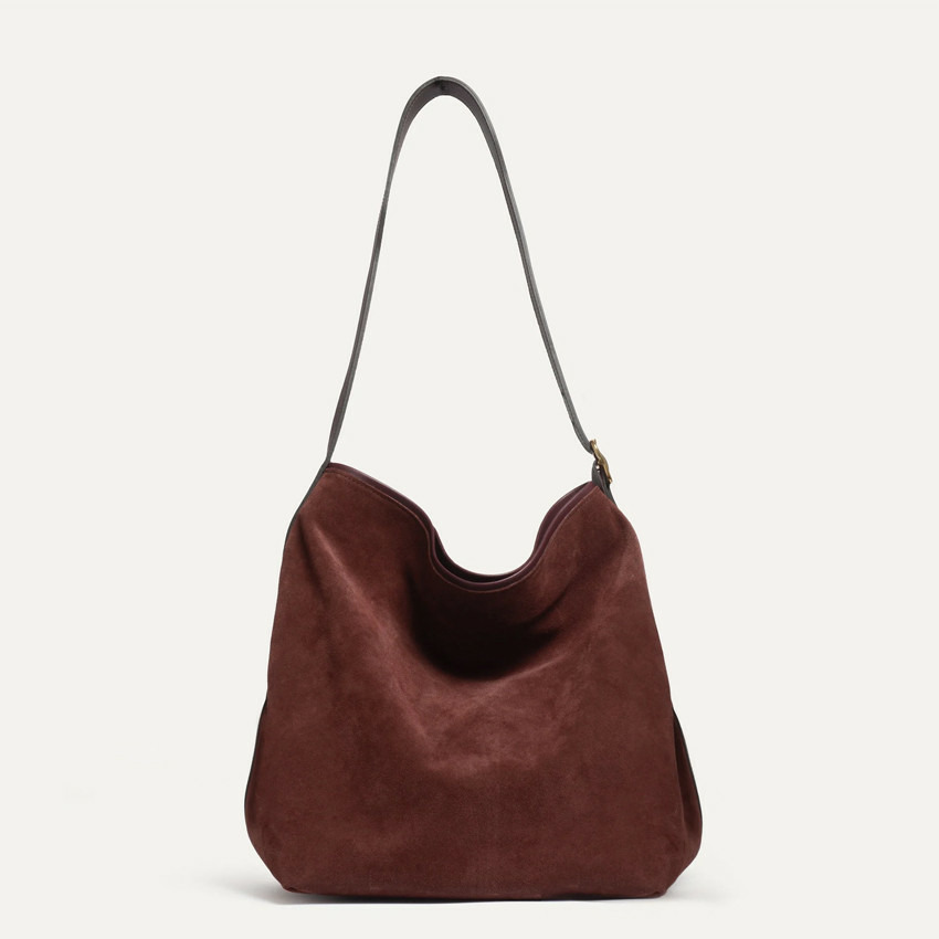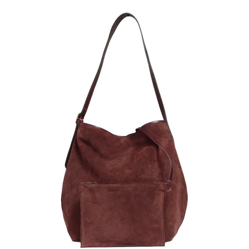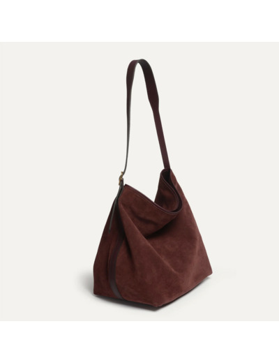 Bleu de Chauffe Sofia Sac Seau Cuir Daim Marron Rubis