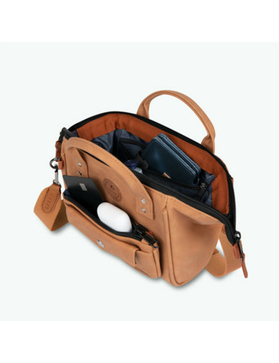Le sac peut-il contenir un grand smartphone ? Oui, grâce à son ouverture grand angle et ses poches zippées, il accueille facilement un smartphone et d’autres petits essentiels.
