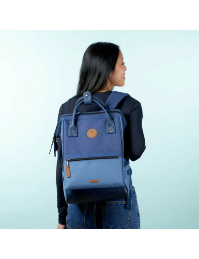 • Sac à dos accompagné de 2 pochettes interchangeables : bleu foncé (San Giljan) + motifs (Bangkok)