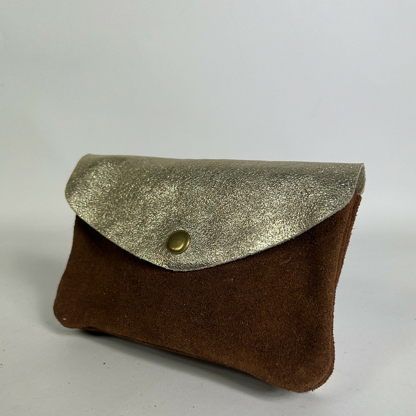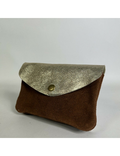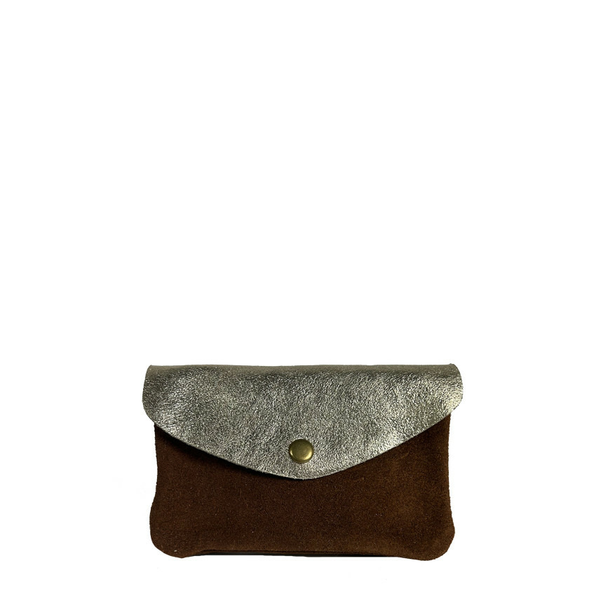 Farfouillette Grand Porte-Monnaie En Daim Choco / Doré