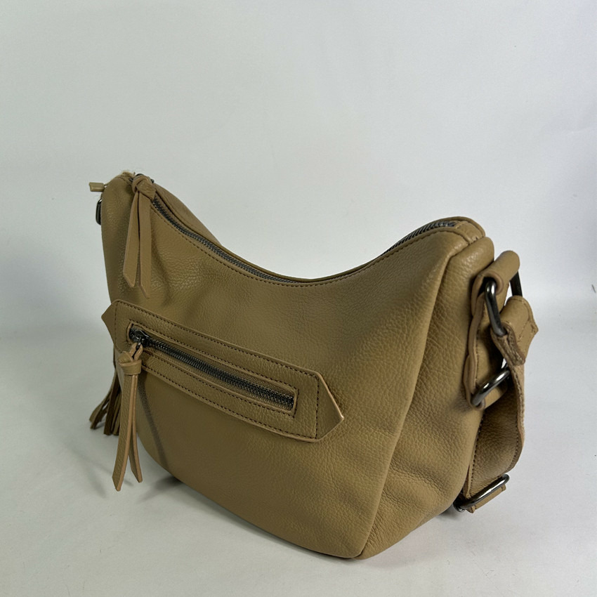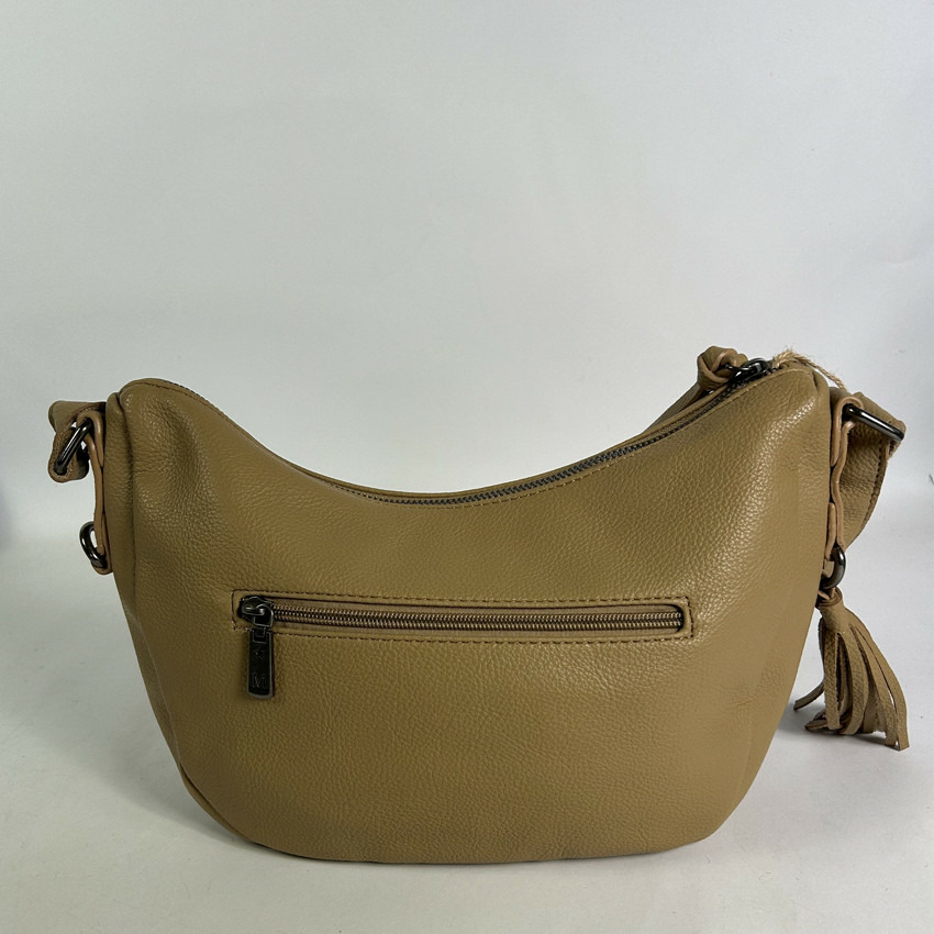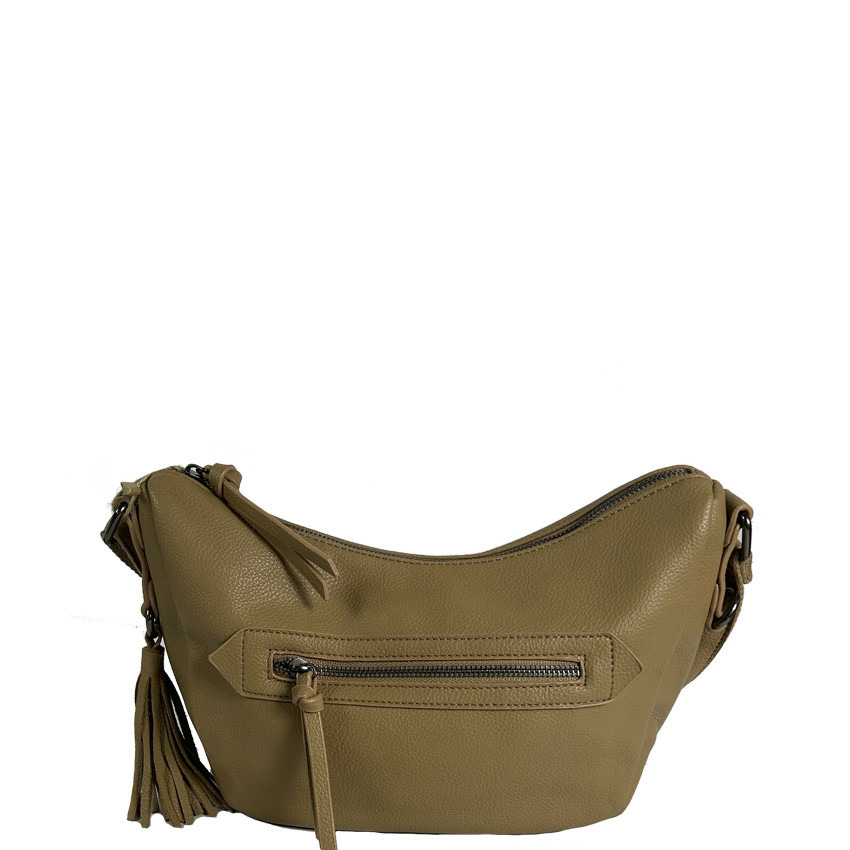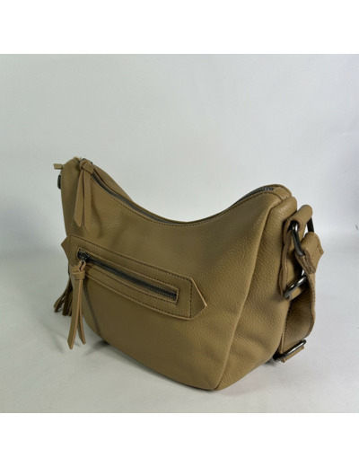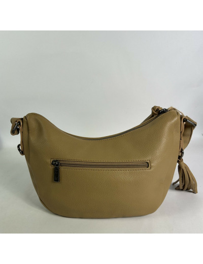 Dimensions : 27 cm de longueur, 18 cm de hauteur, 10 cm de profondeur. Fermeture principale zippée. Matériau : similicuir grainé. Anses fixes et réglables. Compartiment unique avec 2 poches plaquées et 1 poche zippée. Poches zippées à l’avant et à l’arrière.