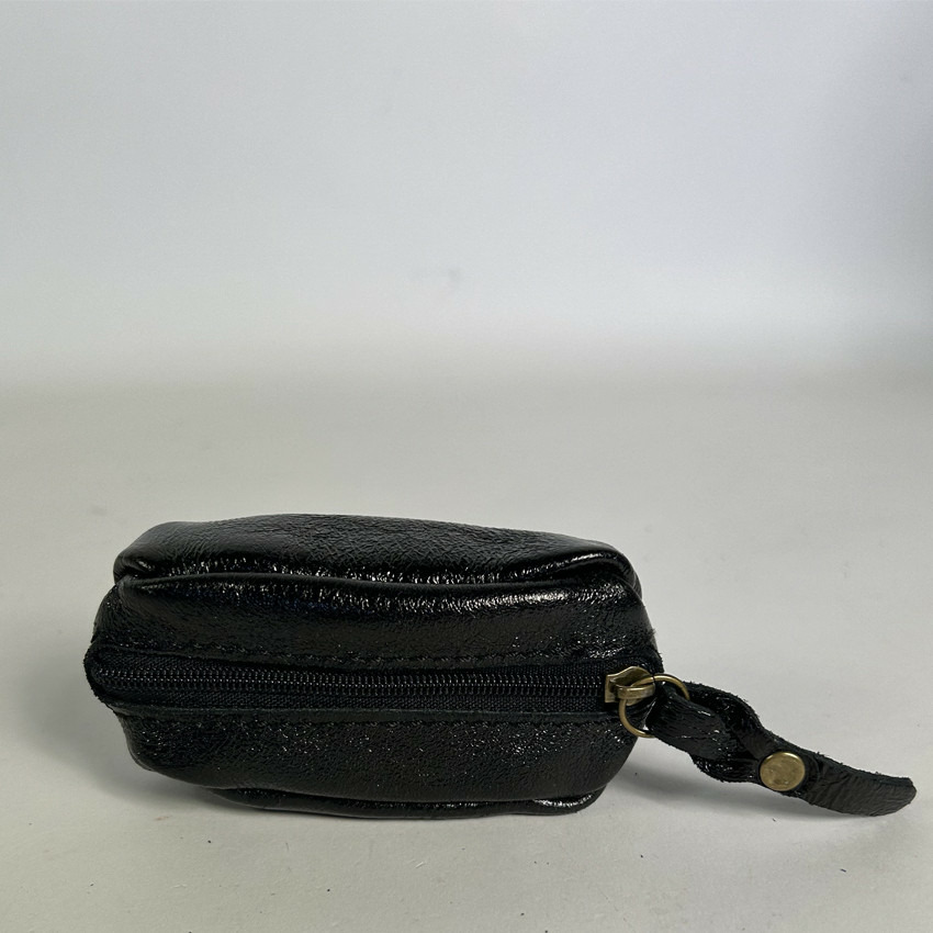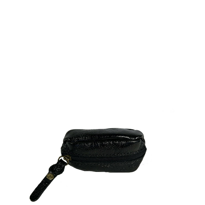 Farfouillette Petit Porte-Monnaie En Cuir Effet Froissé Brillant Noir
