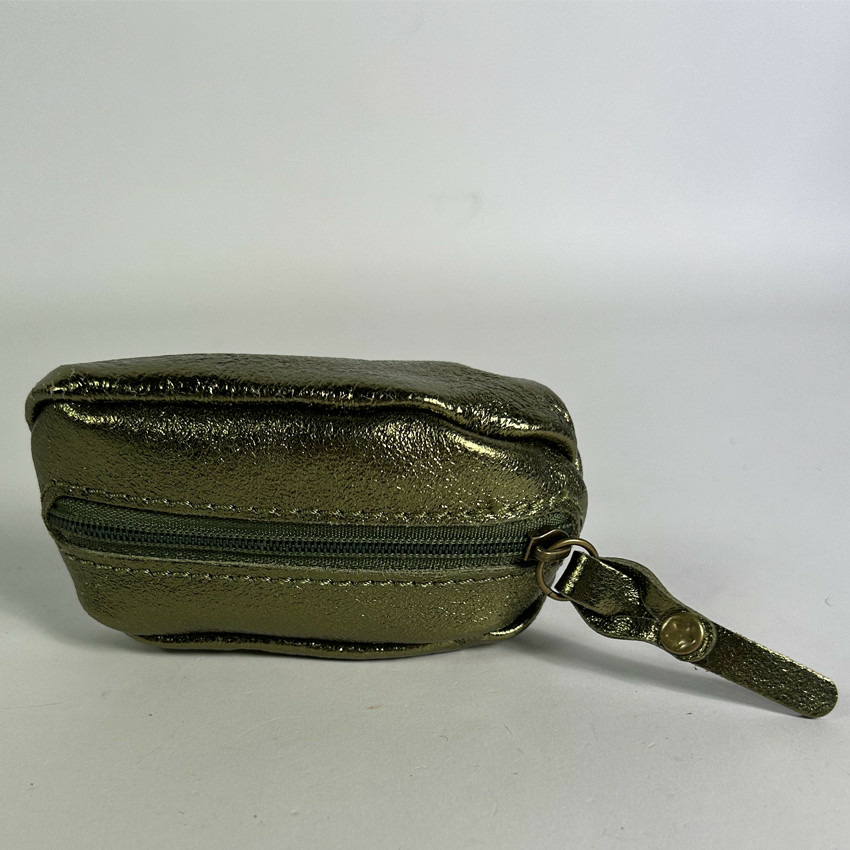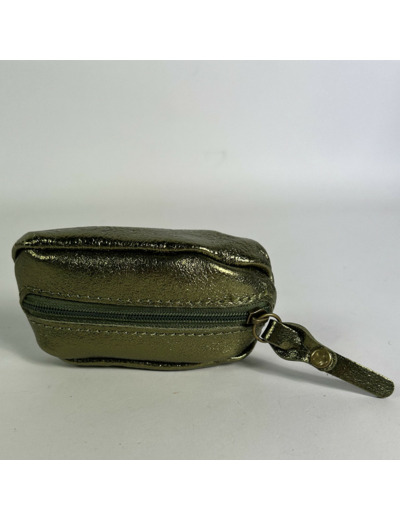 Farfouillette Petit Porte-Monnaie En Cuir Effet Froissé Brillant Olive