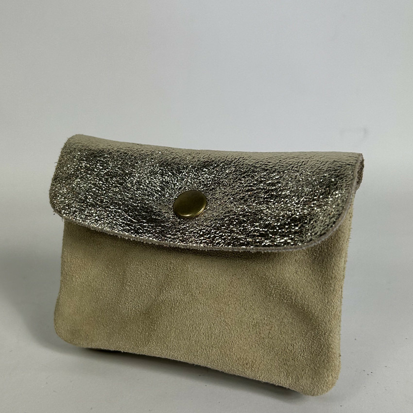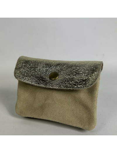 Farfouillette Petit Porte-Monnaie En Daim Naturel / Doré