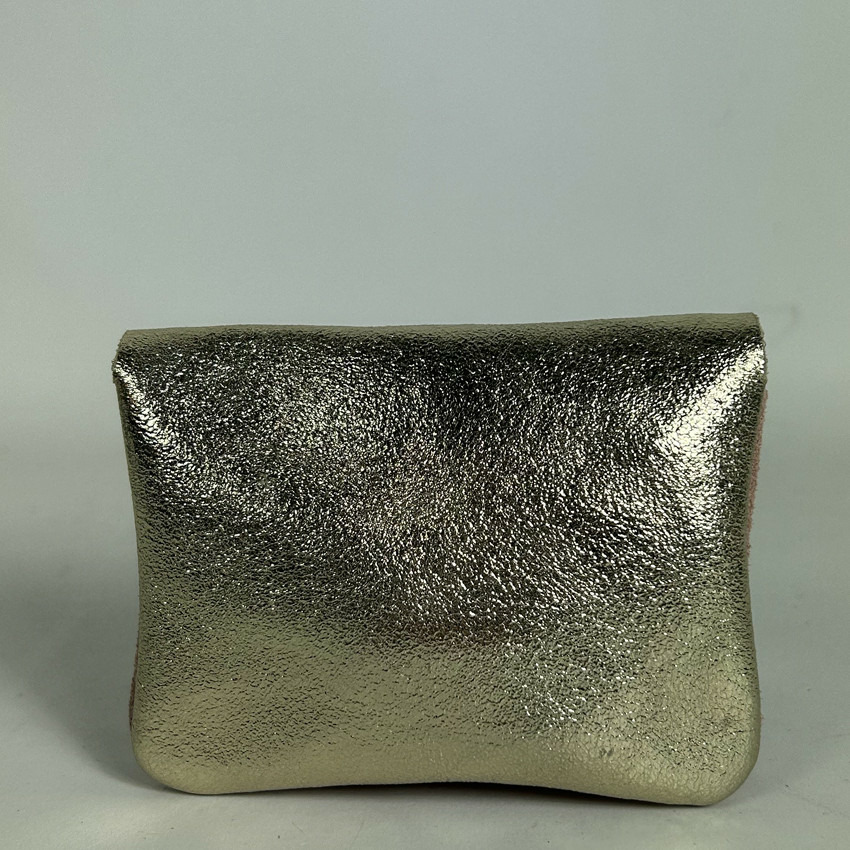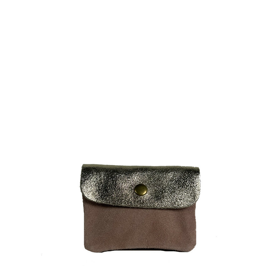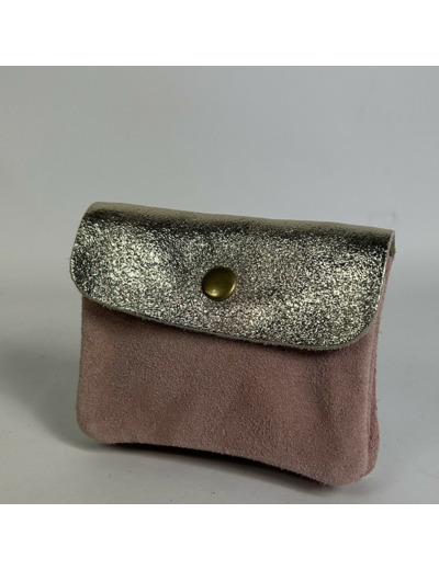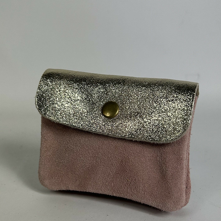 Farfouillette Petit Porte-Monnaie En Daim Rose / Doré