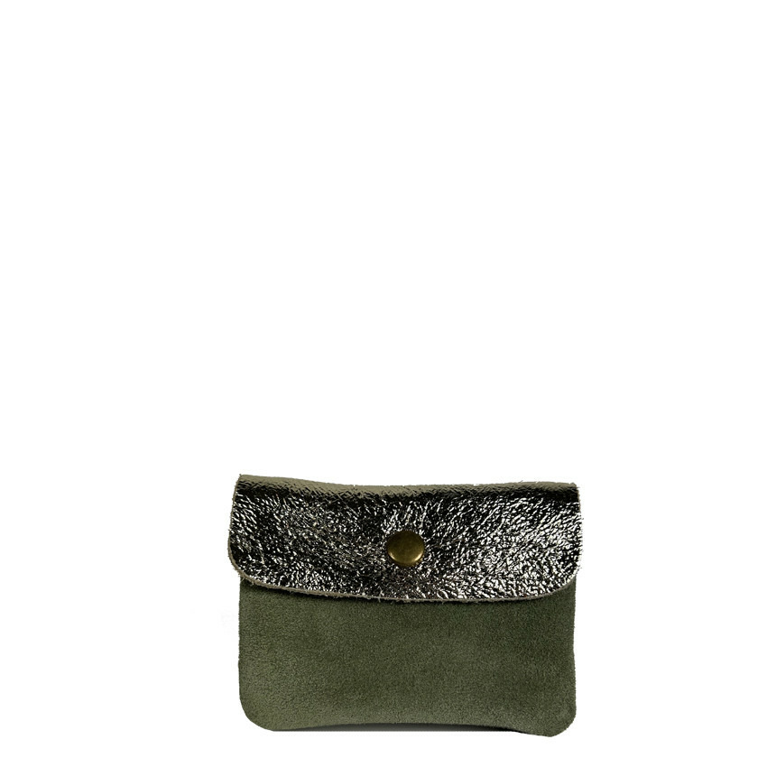 Farfouillette Petit Porte-Monnaie En Daim Vert D'eau / Doré