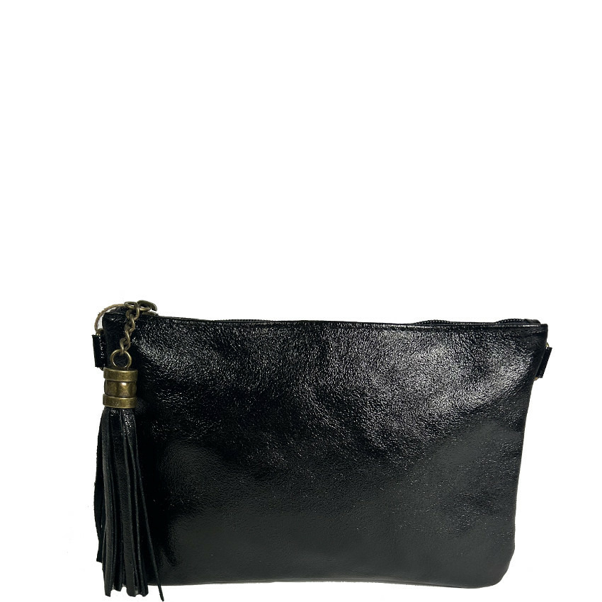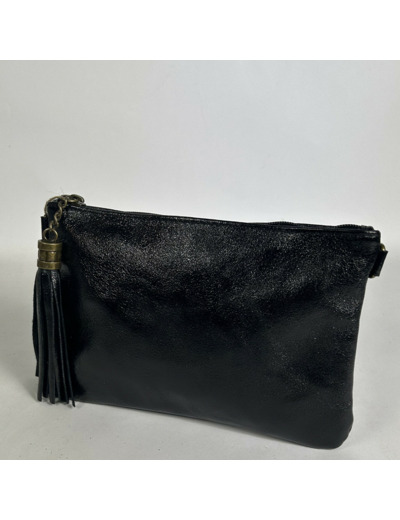 Farfouillette Pochette De Mariage Cuir Lisse Et Brillant Noir