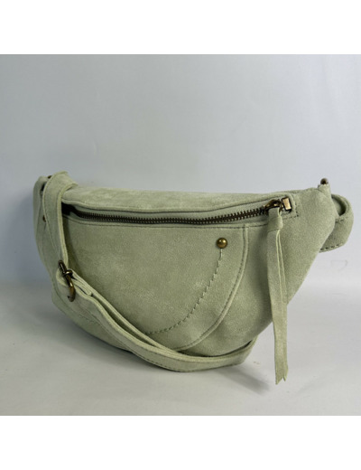 Sac banane effet daim synthétique avec clous à l’avant. Une bandoulière réglable non amovible. Dimensions 33 x 16 x 2 cm. 1 poche zippée au dos. 1 compartiment principal avec 1 poche zippée et 1 poche plaquée. Se porte de travers.