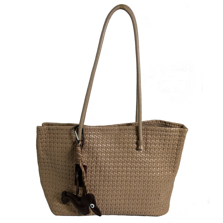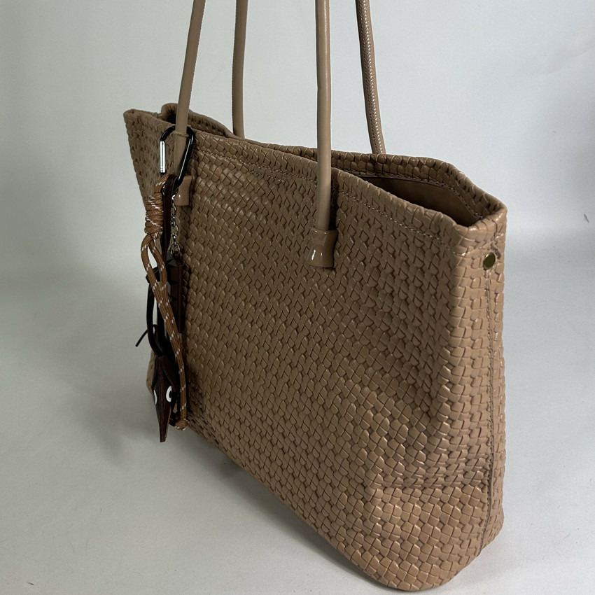Farfouillette Sac Shopping Tressé Avec Porte-Clés Amovibles Taupe