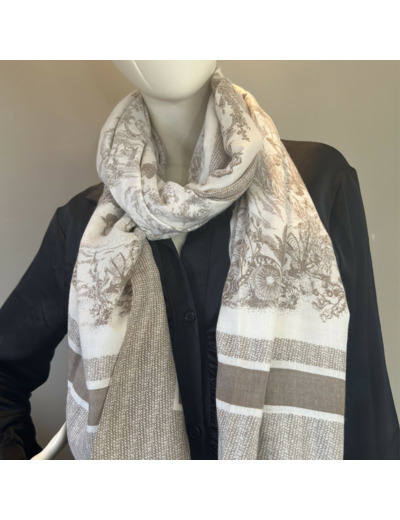 Fabriqué à partir de 80% viscose et 20% laine, ce foulard mesure 180 cm de long sur 80 cm de large, offrant une ampleur idéale pour varier les styles et les portés.