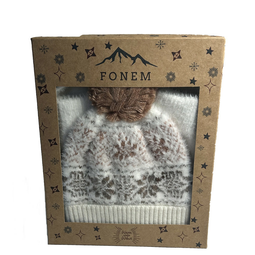 Fonem Lot Gants, Echarpe & Bonnet Ecru