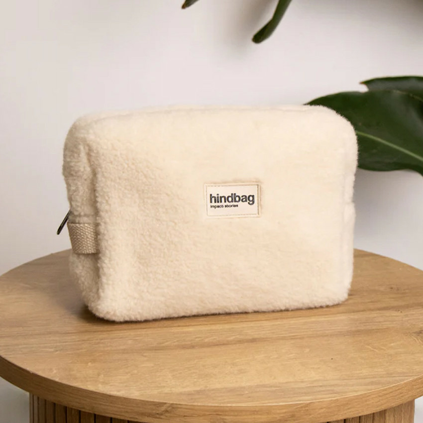 Adoptez l’élégance responsable avec la trousse cosmétique Hindbag Leon en fausse fourrure Teddy Arctique. Un accessoire chic et durable pour organiser vos essentiels beauté avec style.