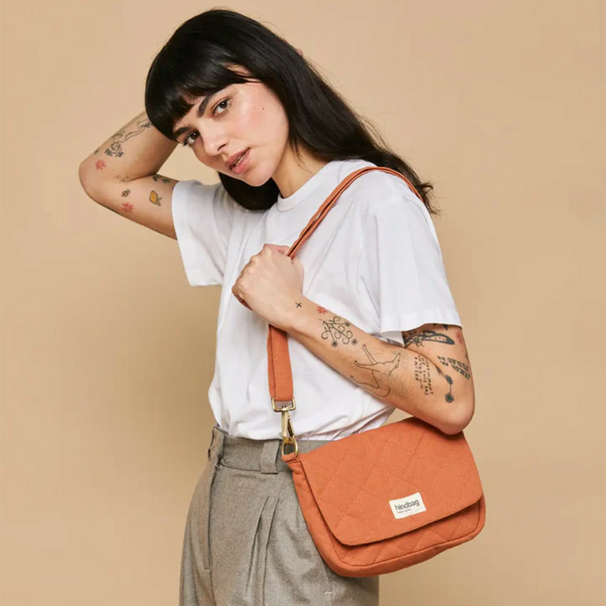 Hindbag Sac Trotteur Margault Matelassé Sienne allie élégance naturelle et engagement responsable. Son design épuré et sa teinte sienne apportent une touche chaleureuse à toutes vos tenues.