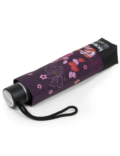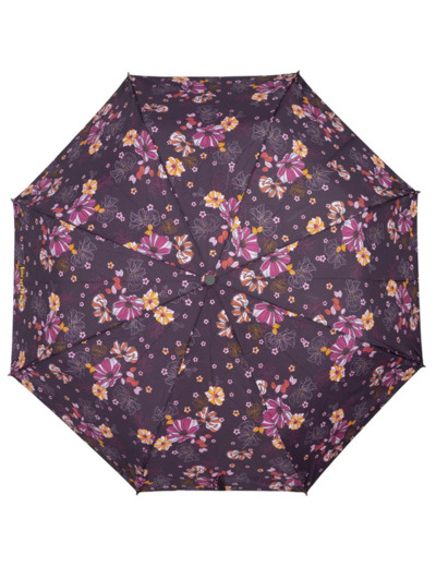 Isotoner Parapluie Femme Pliant Manuel Fleurs Aubergine