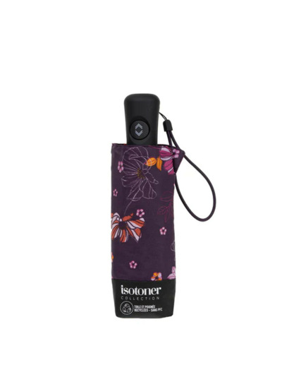 Isotoner Parapluie Mini Pliant Automatique Fleurs Aubergine