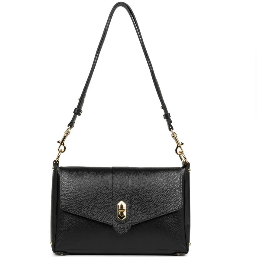 Ce sac trotteur séduit par sa silhouette épurée et sa finition soignée. Son rabat sécurisé par un fermoir assure une fermeture fiable tandis que la bandoulière amovible et réglable offre un porté polyvalent, à l’épaule ou en travers. L’intérieur doublé en cuir de vachette garantit une tenue irréprochable et un toucher luxueux.