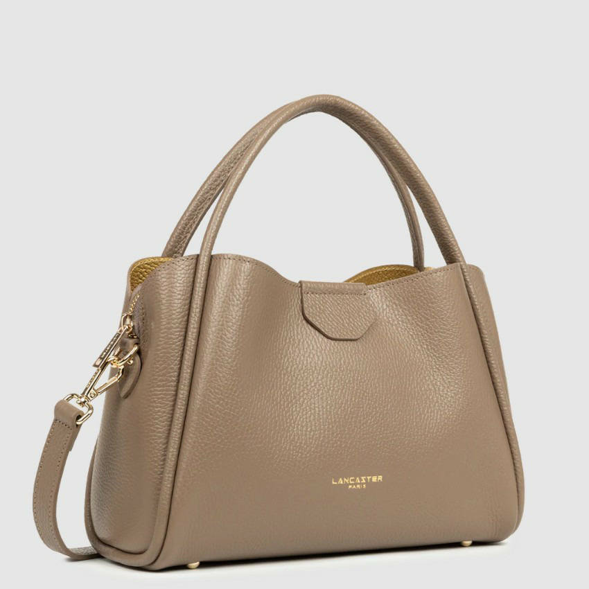 Alliez élégance et praticité avec le sac Lancaster Ida Double, un incontournable pour la femme moderne. Son cuir de vachette grainé taupe-in-or apporte une touche sophistiquée à toutes vos tenues, du bureau aux sorties.