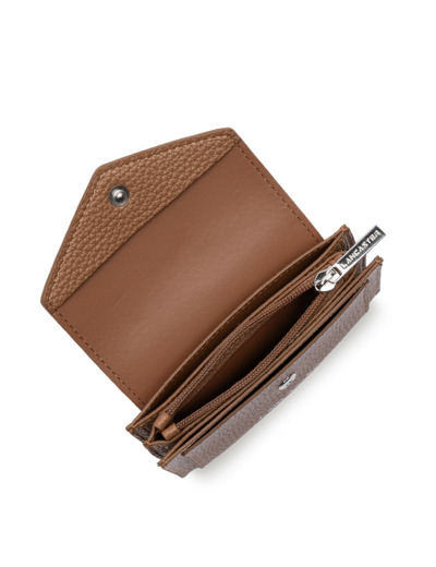 Réponse : La fermeture par rabat avec bouton pression garantit une bonne sécurité de vos cartes et monnaie.