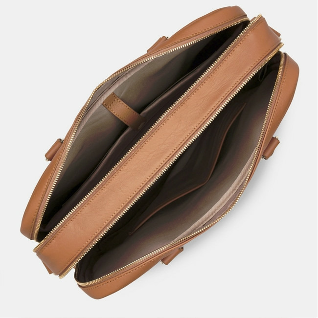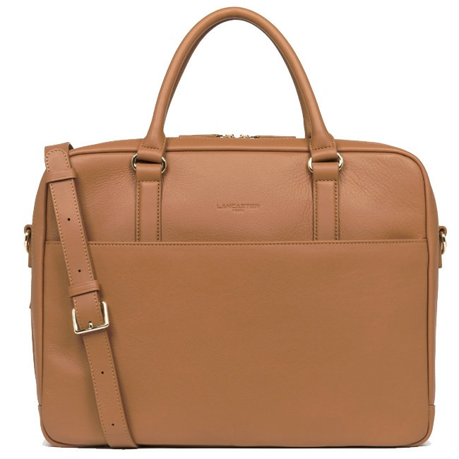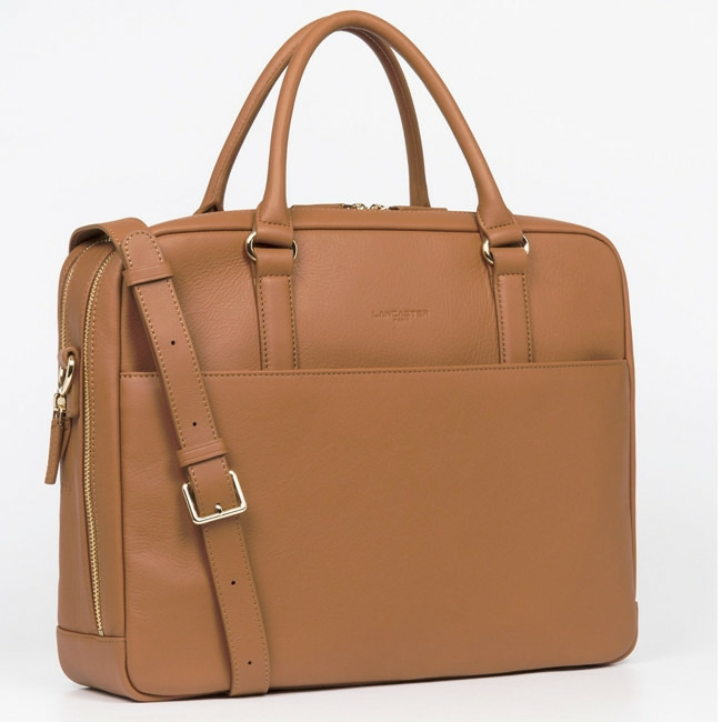 Un grand sac à 2 soufflets, en cuir de vachette pleine fleur, avec une grande poche intérieure et une poche pour tablettes.