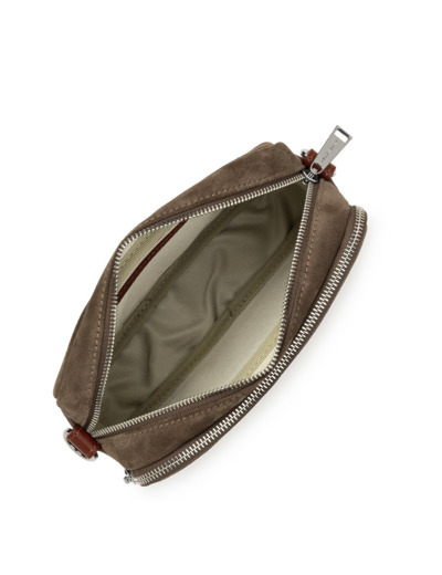 • Sac porté travers 2 compartiments en cuir de vachette suédé