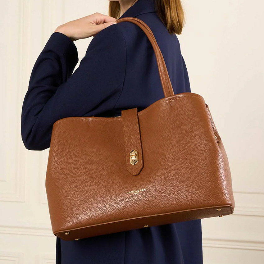 Alliez élégance et praticité avec le Lancaster Top Double Grand Sac Shopping en cuir camel. Un cabas raffiné qui sublime votre allure tout en répondant à vos besoins quotidiens.