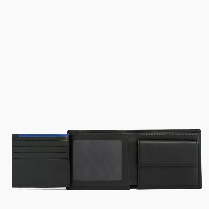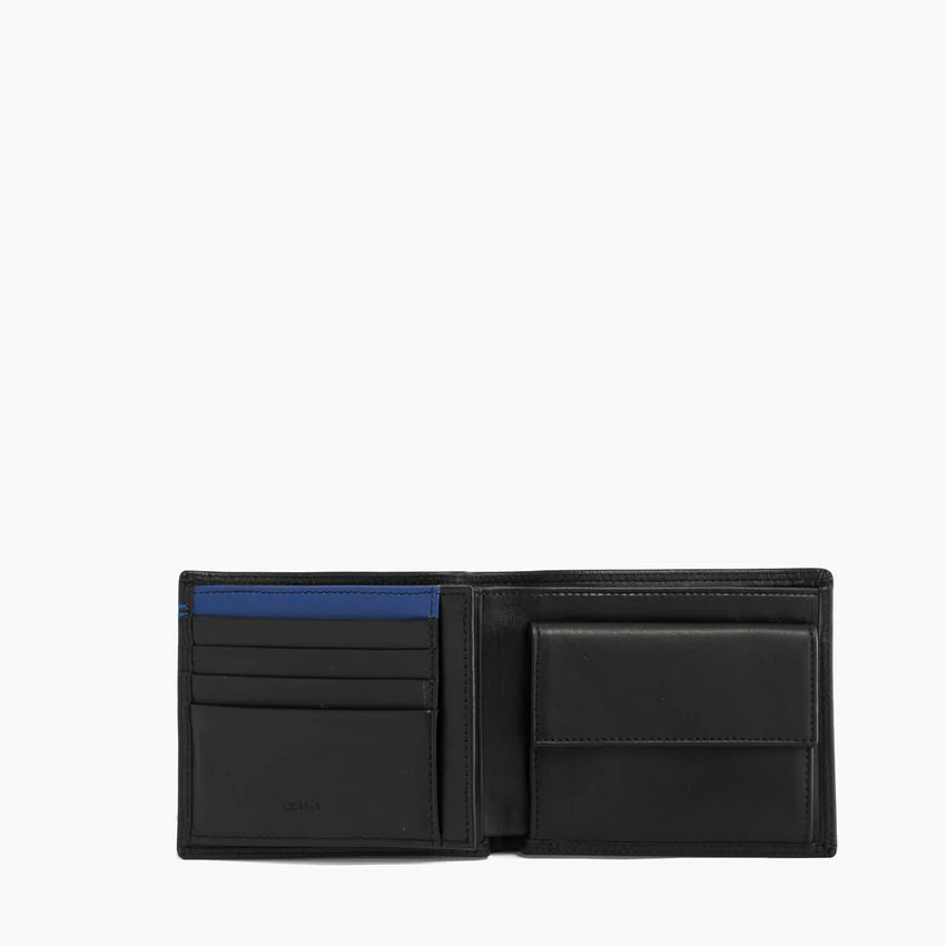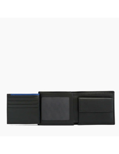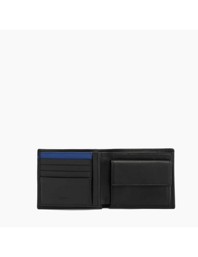 • A l'intérieur 2 poches plates, 1 poche ID, 1 poche monnaie rabat, 2 poches billets et 8 compartiments pour cartes