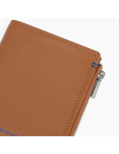 Le Tanneur Martin Portefeuille Zippé En Cuir Lisse Anti RFID Tan