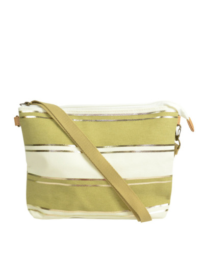 Forme trotteur en toile, fermeture zippée, bandoulière réglable et amovible pour un porté croisé ou épaule. Intérieur doublé textile avec un compartiment principal et deux poches plaquées. Aucune poche extérieure.