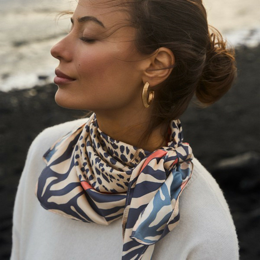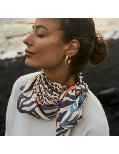Confectionné dans un tissu aérien, ce foulard épouse délicatement votre cou ou vos cheveux, apportant une note de couleur et de mouvement à votre tenue. Son imprimé Nairobi, inspiré des paysages et motifs ethniques, transforme un accessoire classique en un véritable statement mode. Polyvalent, il se prête aussi bien à un look casual qu’à une silhouette plus sophistiquée.