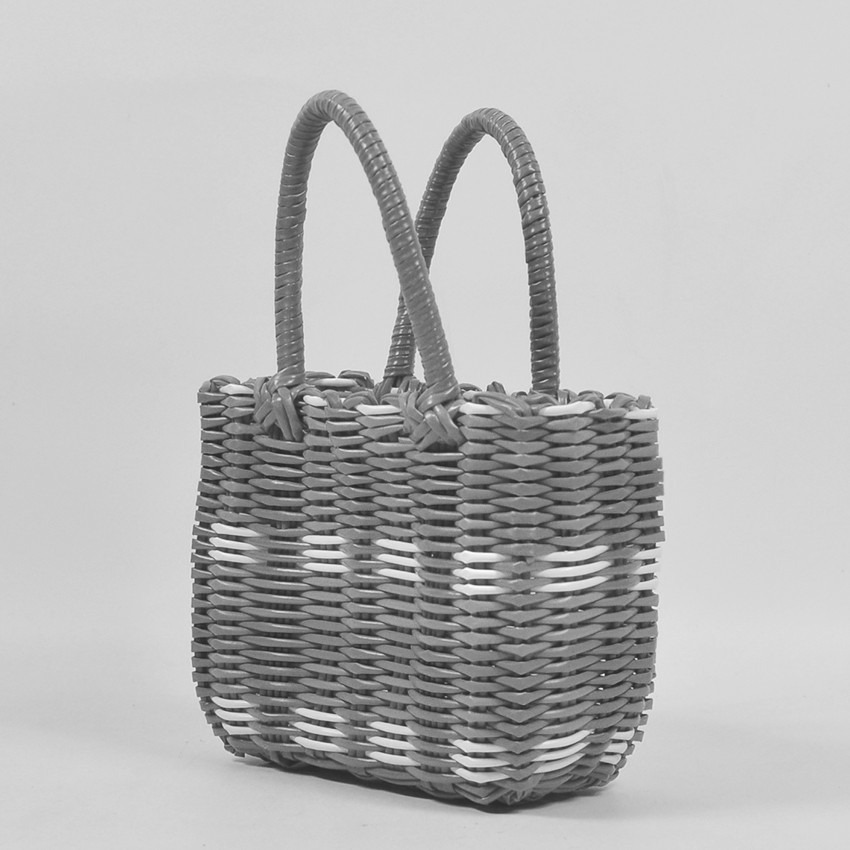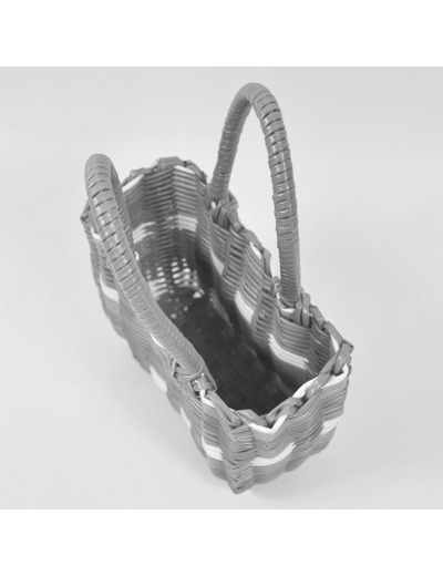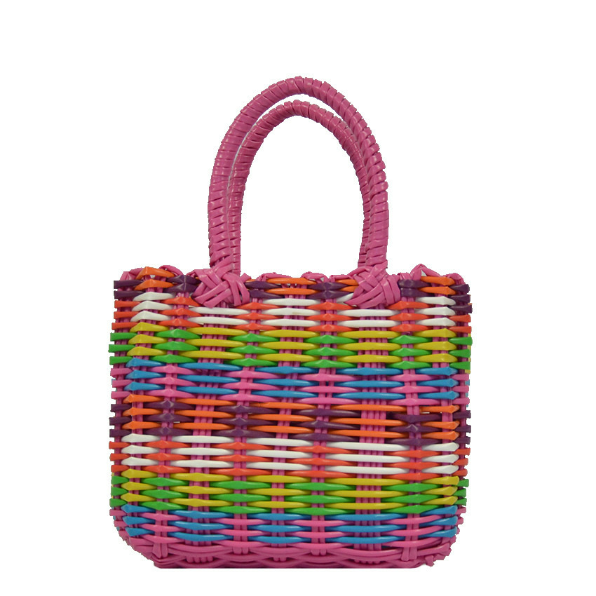 Dimensions précises : 22 x 15 x 7 cm. Matière : plastique. Forme panier avec anses fixes. Sans fermeture ni poches extérieures. Un compartiment intérieur unique.