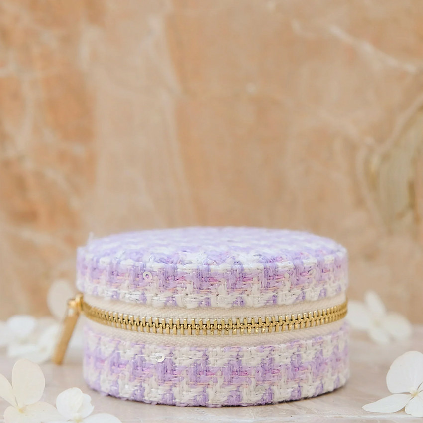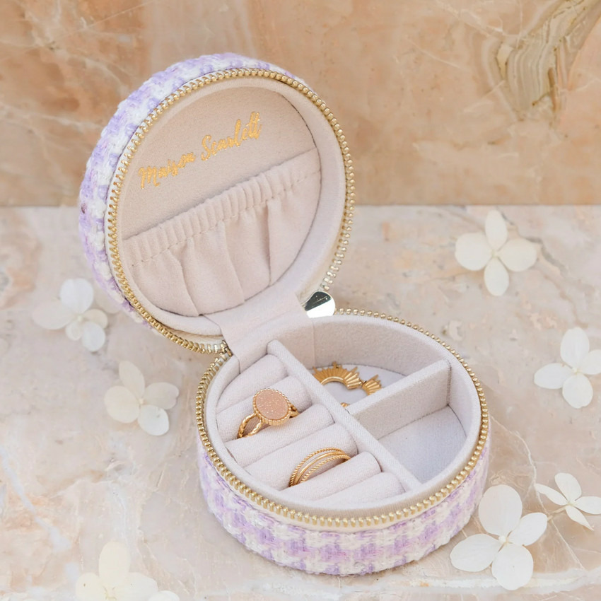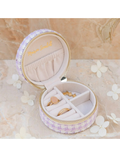 Boîte à bijoux en pied de poule à l'extérieur et en velours à l'intérieur