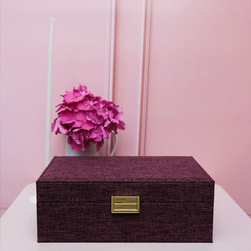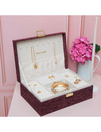Ossature bois recouverte de lin rose à l'extérieur et velours à l'intérieur