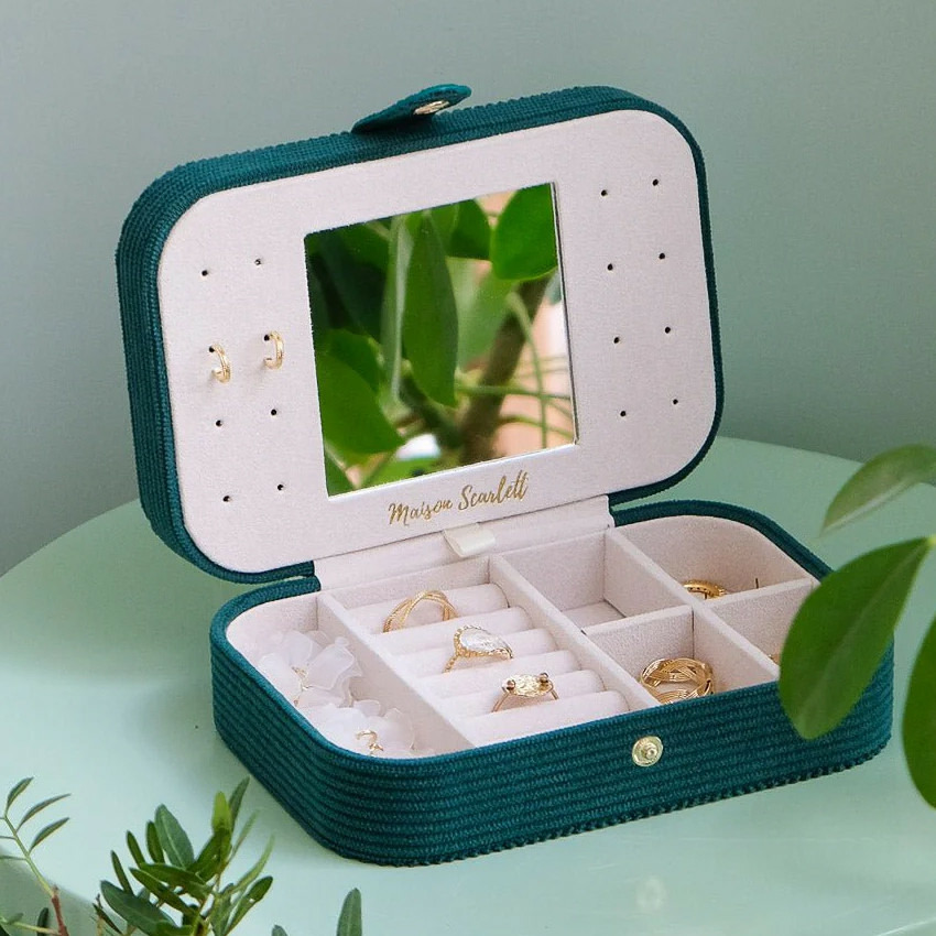 Maison Scarlett Brigitte Boite A Bijoux De Voyage En Velours Côtelé CTVR Vert