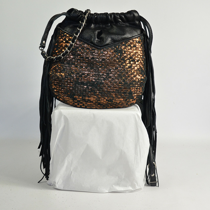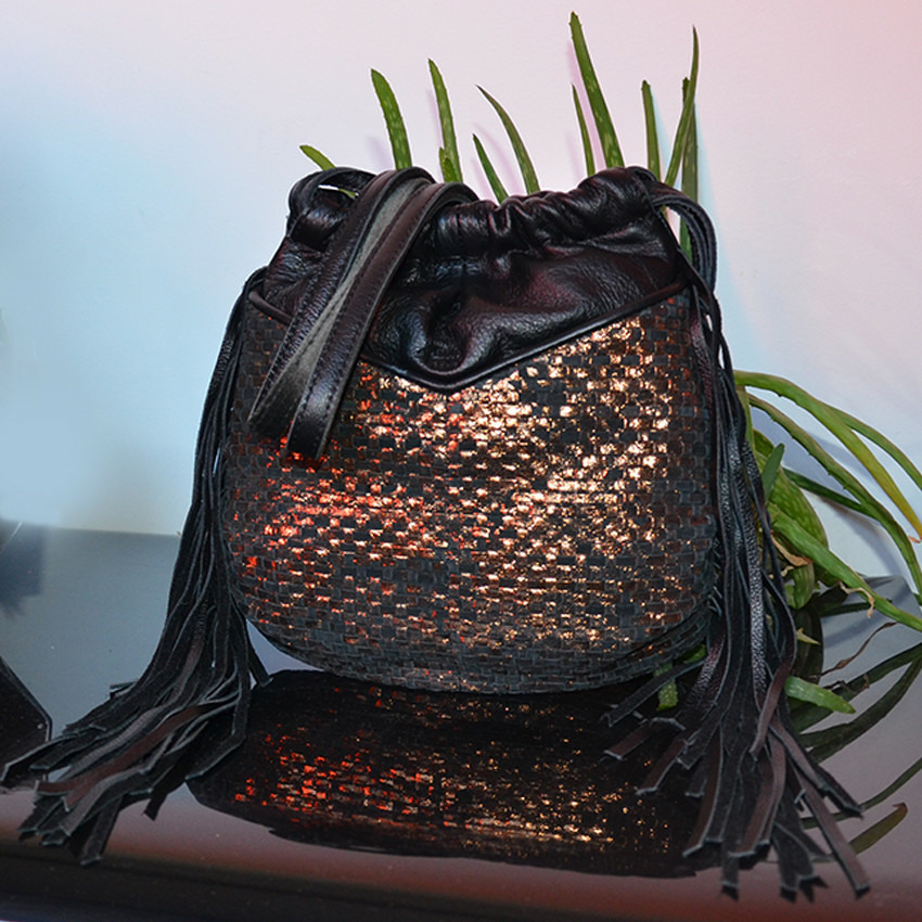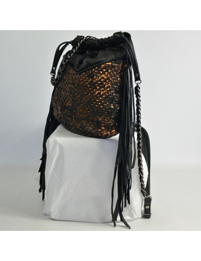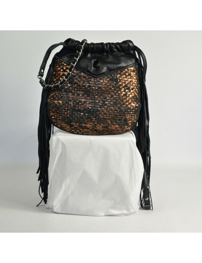 Mila Louise Nora W Sac Bourse Cuir Tressé Noir Bronze