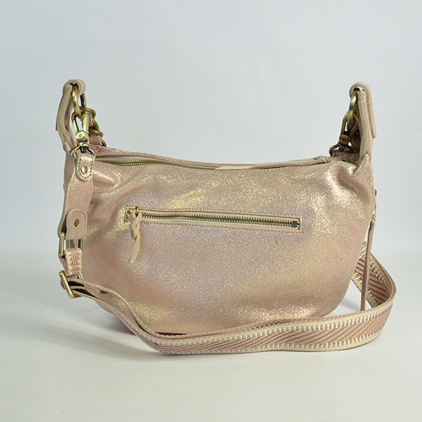 Conçu pour accompagner vos journées avec style, ce sac se distingue par sa texture cuir tressé et sa teinte rosée délicate. Sa forme demi-lune offre une touche féminine et contemporaine, tandis que l’anse chaîne bicolore et la bandoulière réglable apportent polyvalence et confort. Compact mais fonctionnel, il s’adapte à toutes vos tenues, du casual chic au plus habillé.