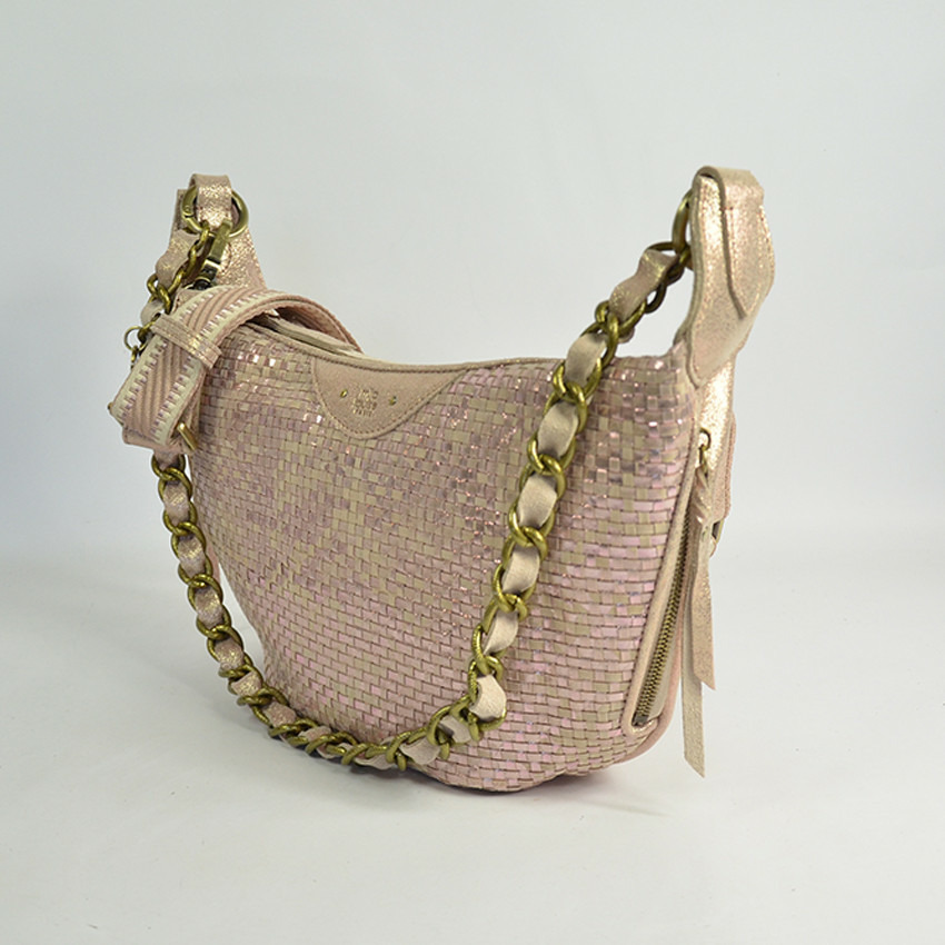 Mila Louise Rubina W Sac Besace Demi Lune Cuir Tressé Rosée