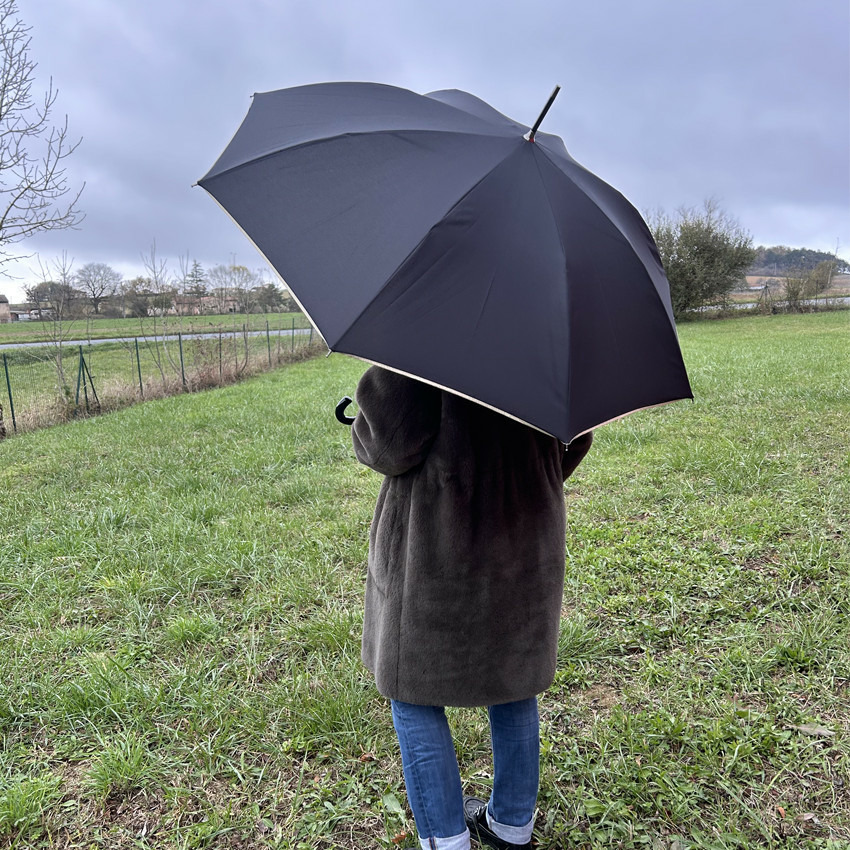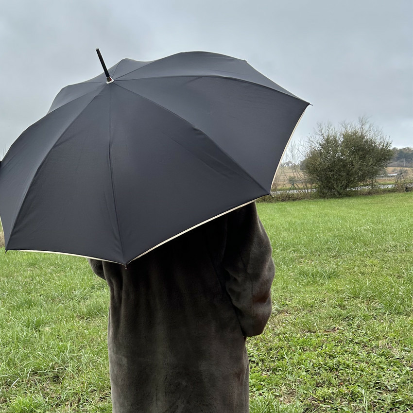 Piganiol x Noix D'arec Parapluie Canne Pour Femme Noir / Biais Or