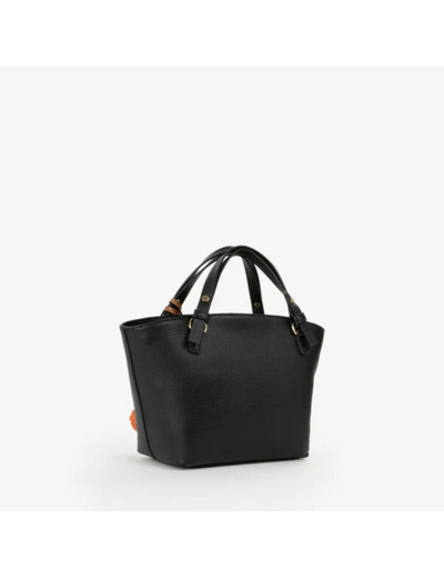 Dimensions : 38 x 22 x 14 cm. Matière extérieure en polyuréthane avec pompons colorés amovibles. Doublure intérieure en polyester. Une bandoulière réglable et amovible. Fermeture zippée. Un compartiment intérieur spacieux. Détails de clous sur les anses.