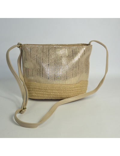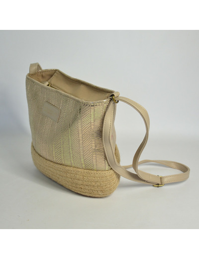 Forme trotteur en toile beige, fermeture zippée, bandoulière réglable pour un porté croisé ou épaule. Intérieur doublé textile avec un compartiment unique et une poche plaquée. Sans poche extérieure, il mise sur la sobriété et la fonctionnalité.